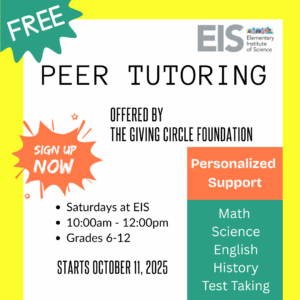 EIS is partnering with the Giving Circle Foundation to provide FREE tutoring for middle school and high school students. Tutoring topics include math, science, English, history, and test taking. Register Here!
